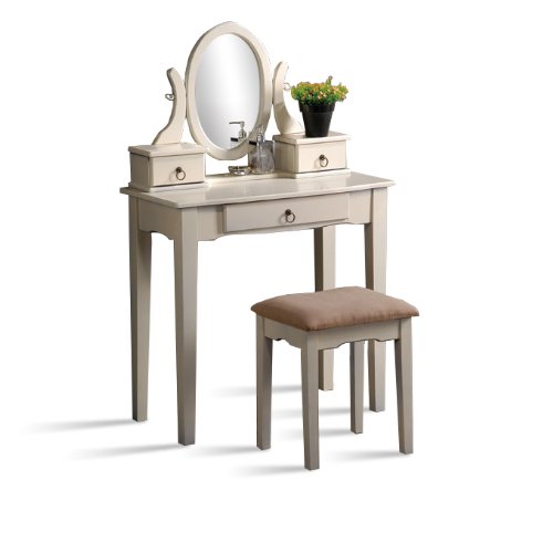 - wood jewelry mirror White Finish Traditional Wood Vanity With Bench Mirror & Jewelry Boxes 500 x 500