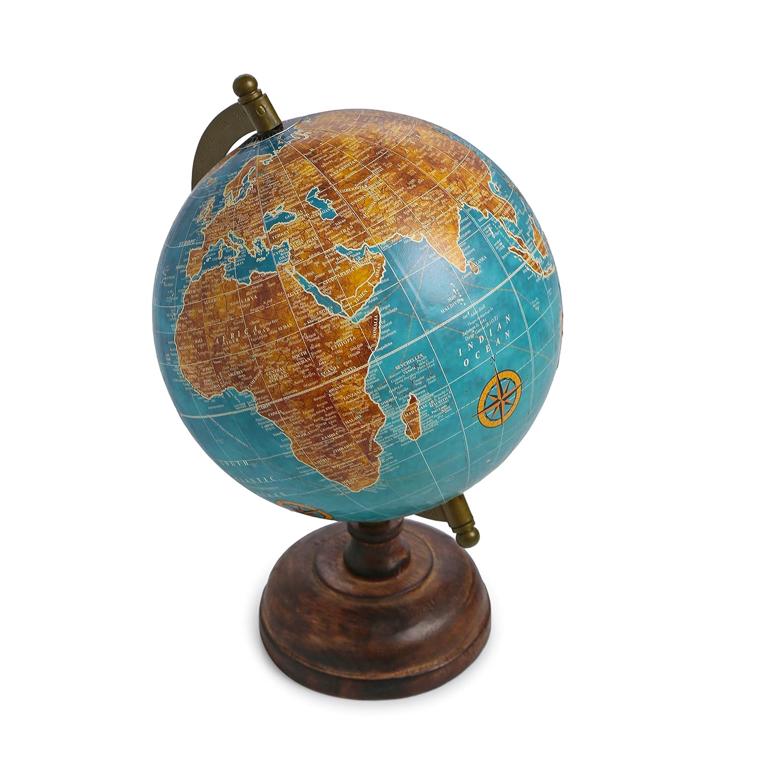 Yeti Ventures Antique Iron Stand Blue Globe Word Map Decorative